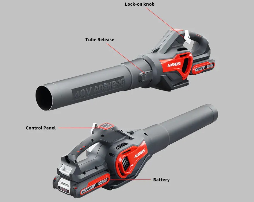 1. Pronađite vezu između cijevi i A40CF900HEB01 40V puhala litijskog litijskog baterija: Na A40CF900HEB01 40V litijskom litijskom puhalu baterija, ova veza obično se nalazi na prednjem dijelu puhala lišća, u blizini zračnog izlaza, i zamišljena je da se lako ne zaspaju.