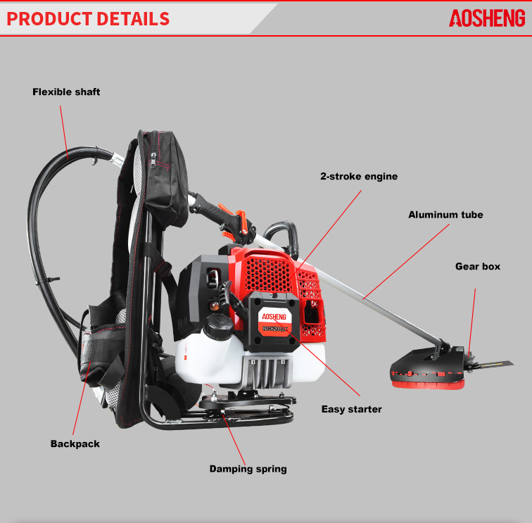 4-taktni motor visokih performansi, zapremina je 38CC. Profesionalna uporaba na otvorenom pustoši Veličina cijevi 26 mm * 1,5 mm, čvrstoća fleksibilne osovine. Širina rezanja je 420 mm Živ...
